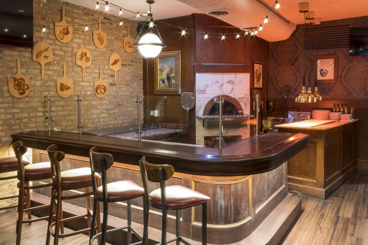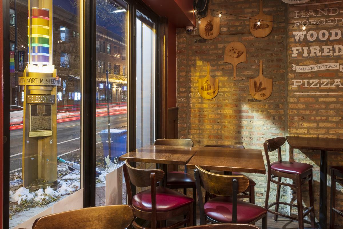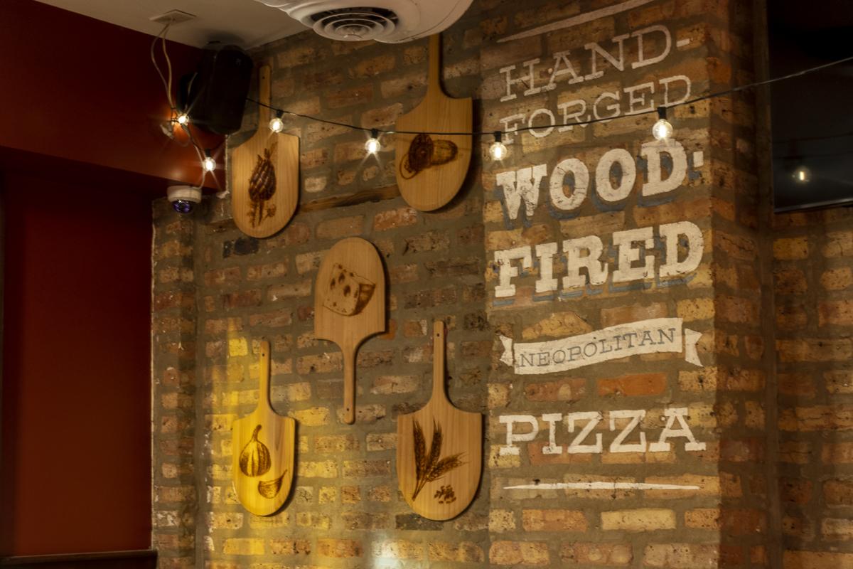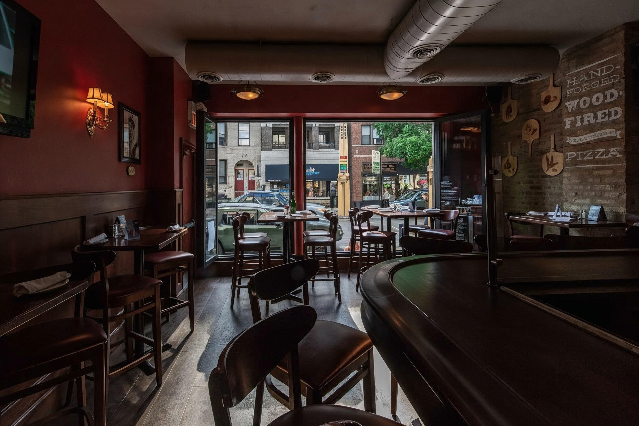 The entire restaurant can accommodate 159 people, while the Patio can accommodate 100, and the Pizza Room, a semi-private space, can seat 20 guests or accommodate up to 30 for standing room.