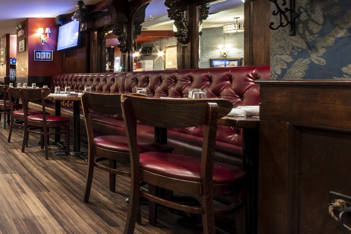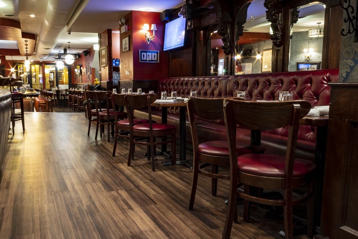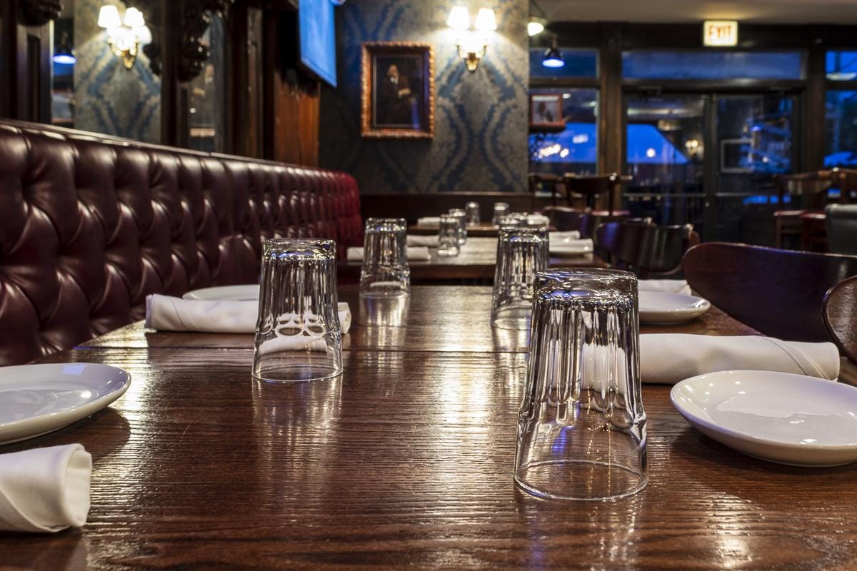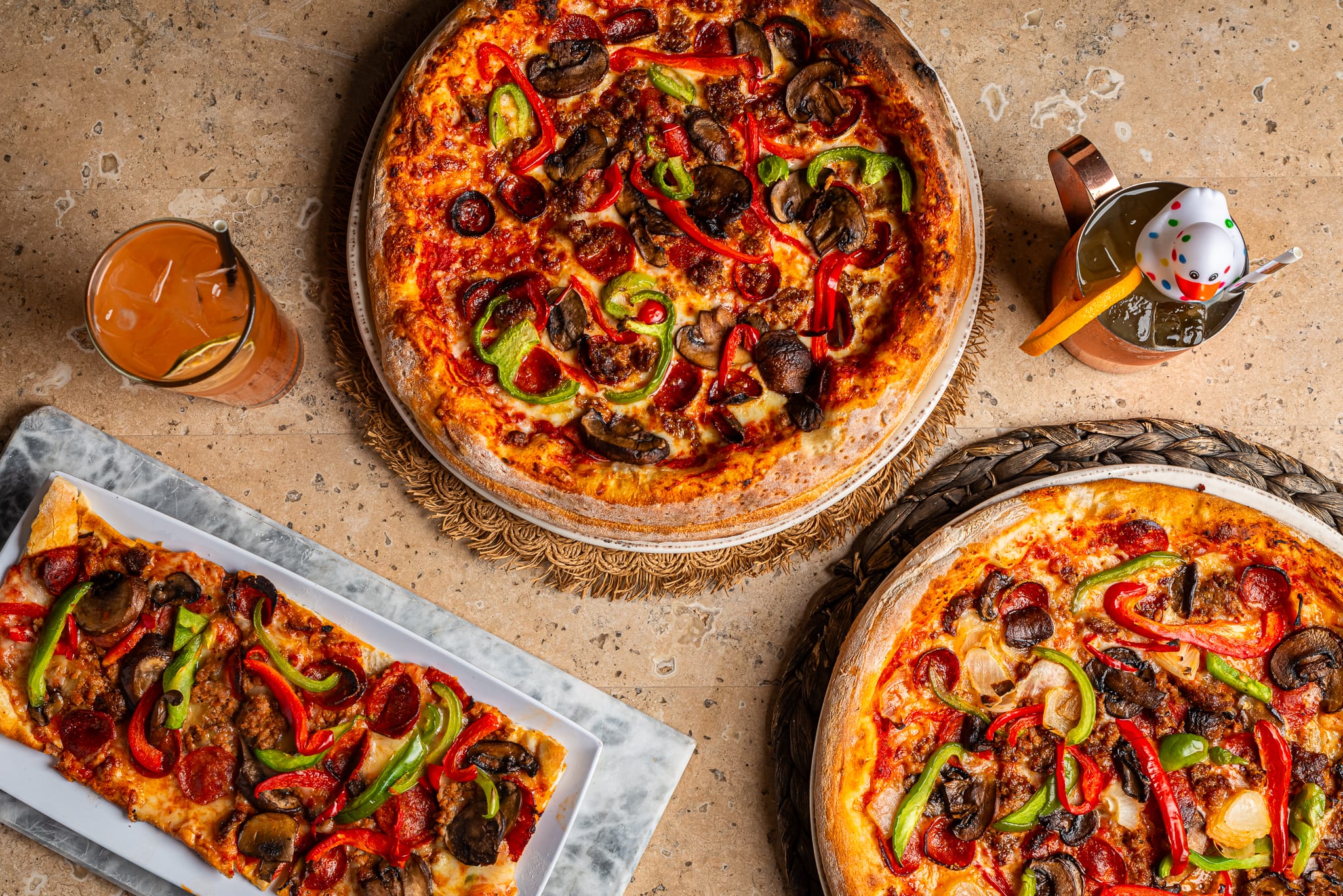 The entire restaurant can accommodate 159 people, while the Patio can accommodate 100, and the Pizza Room, a semi-private space, can seat 20 guests or accommodate up to 30 for standing room.